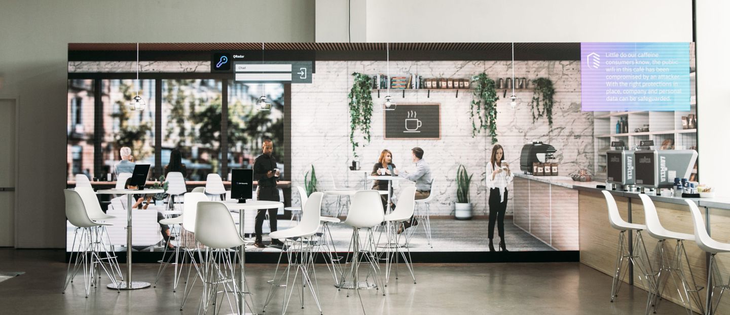 Three environments were created within the conference space, providing educational storytelling in three areas of digital security risk; an upscale food hall, an office lobby coffee shop and an airport sky lounge. For each area, the risk was explained, and IBM Security solutions were offered.